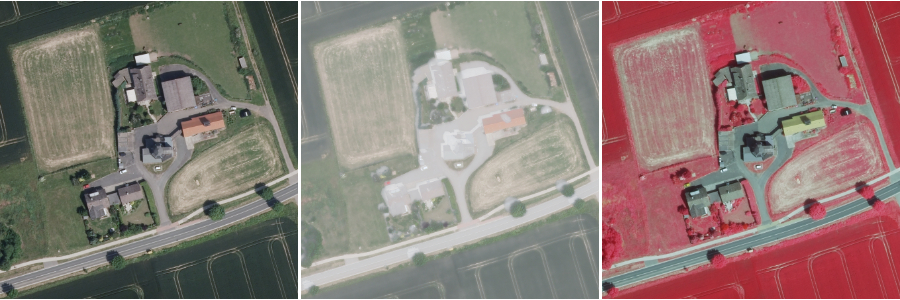 Damit können auch Color-Infrarot (CIR)-Bilder mit den Kanälen nahes Infrarot (NiR), Rot und Grün zur Verfügung gestellt werden. Auch eine kombinierte Version (RGBI) aller Kanäle ist lieferbar.